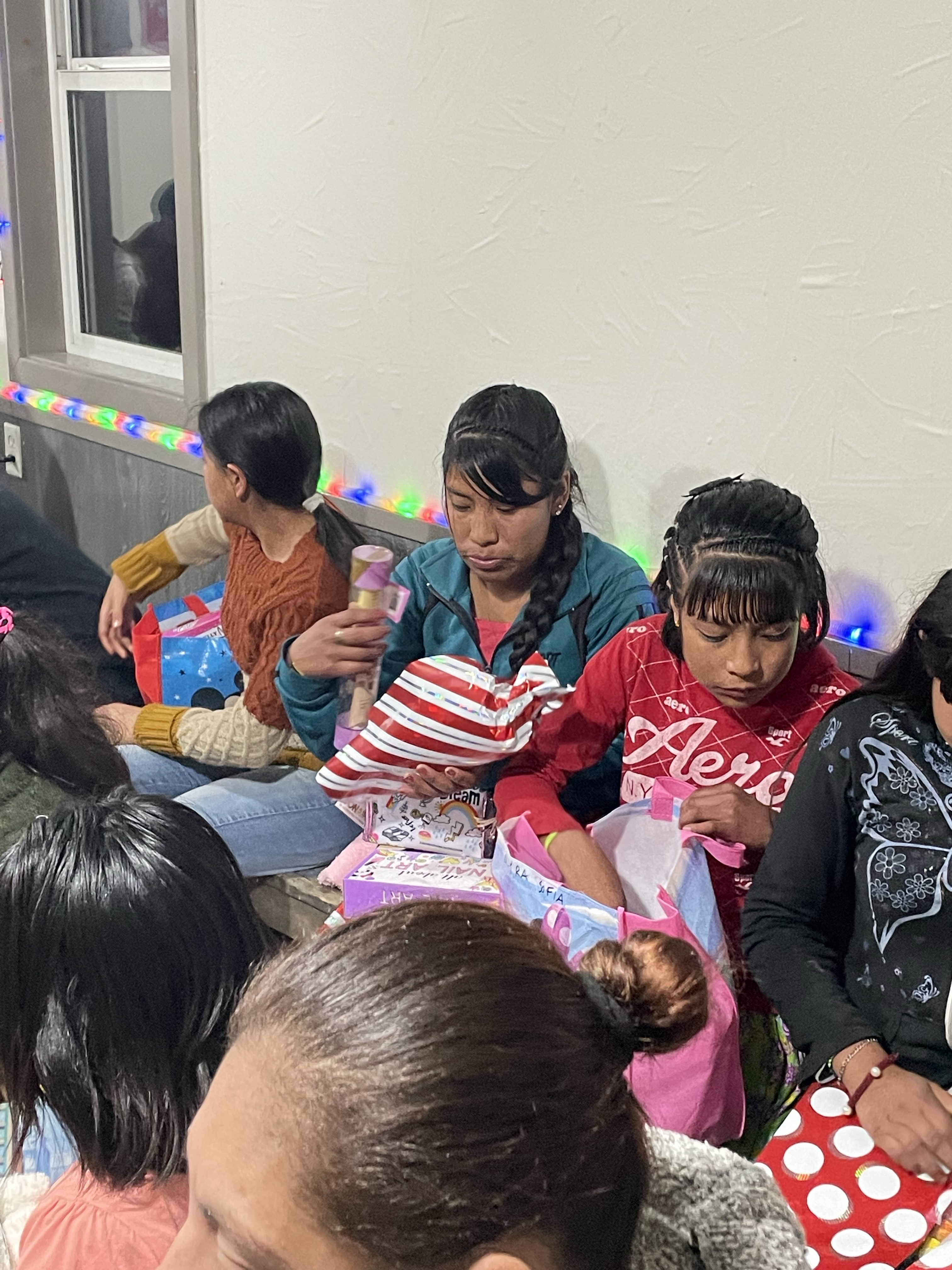 After dinner, we could tell the kids were very excited to finally open their presents. We helped clean and move the tables to make room for all the presents to be brought in.