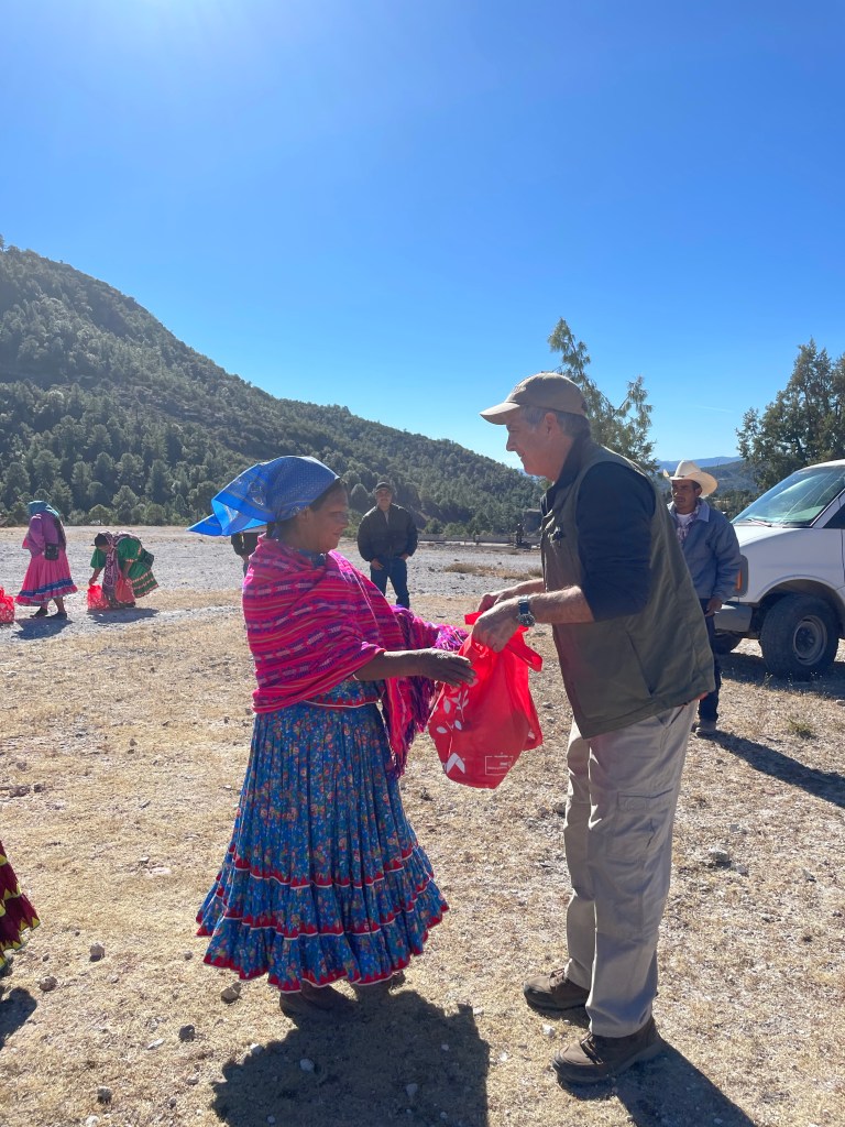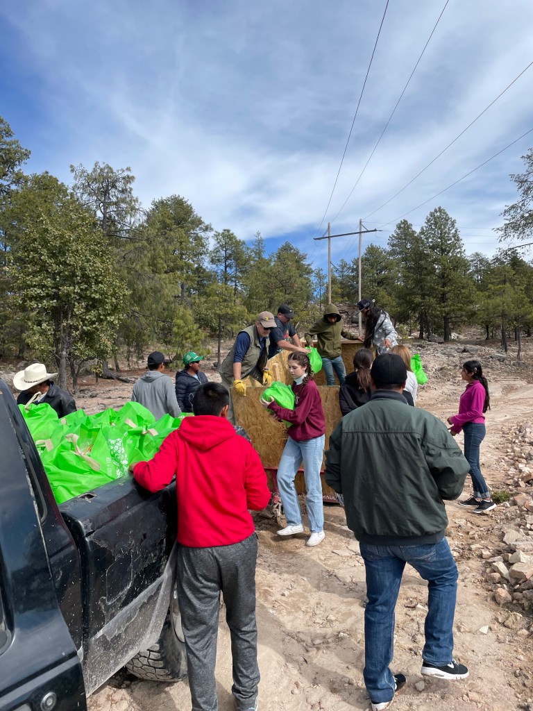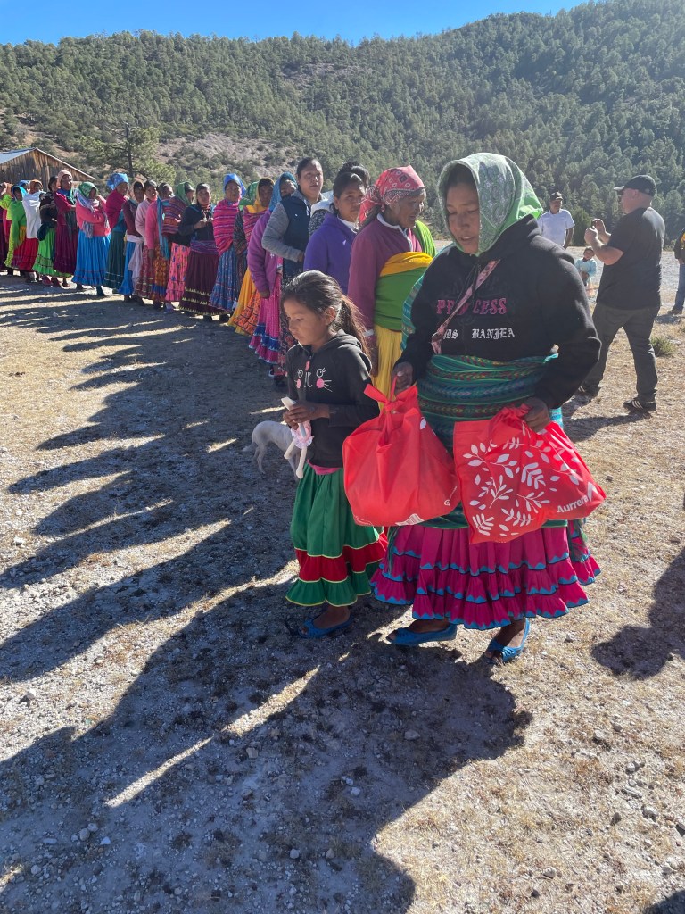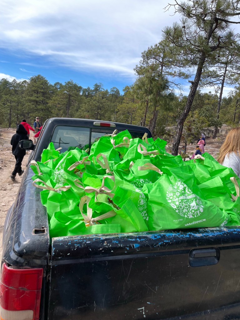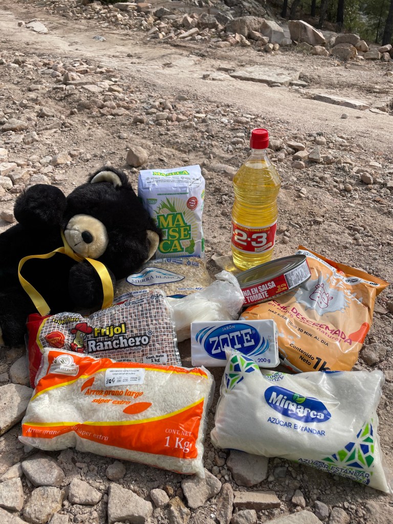 We distribute this food to Tarahumara families living in the mountains who otherwise don’t have easy access to it. We put together the necessities including beans, rice, sugar, lard, oil, oats, dried milk, masa, canned food, soap, and candy/toys for the kids.