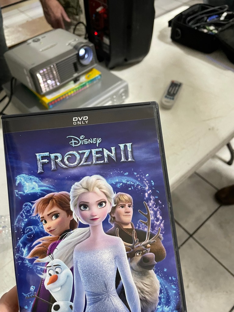 The movie for this year was Frozen II. The first Frozen was a big hit, so we knew we had to show the kids this one. There is no movie theater in Creel, so the kids don’t have access to all the new popular movies that come out.