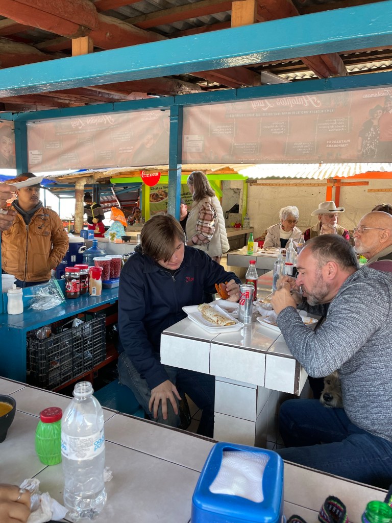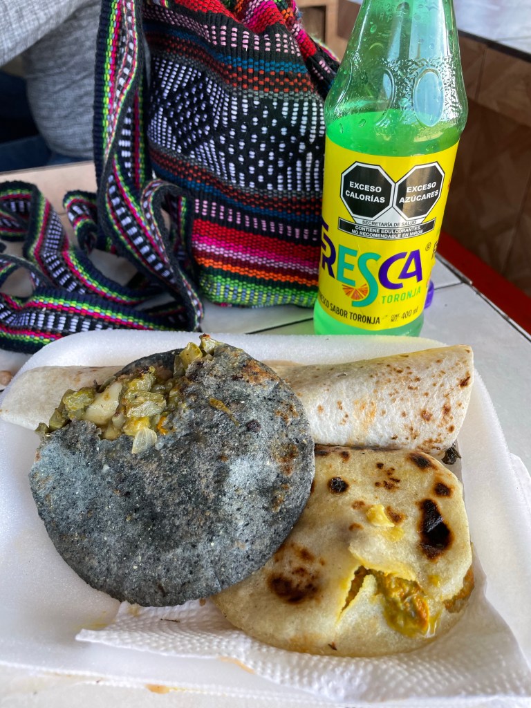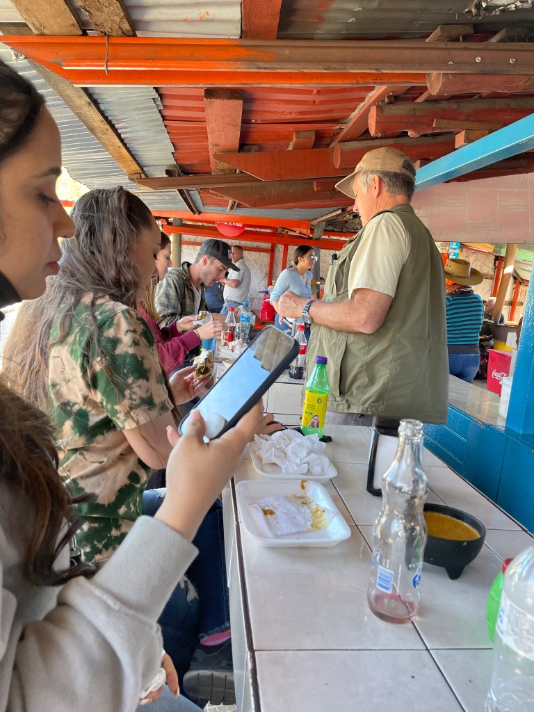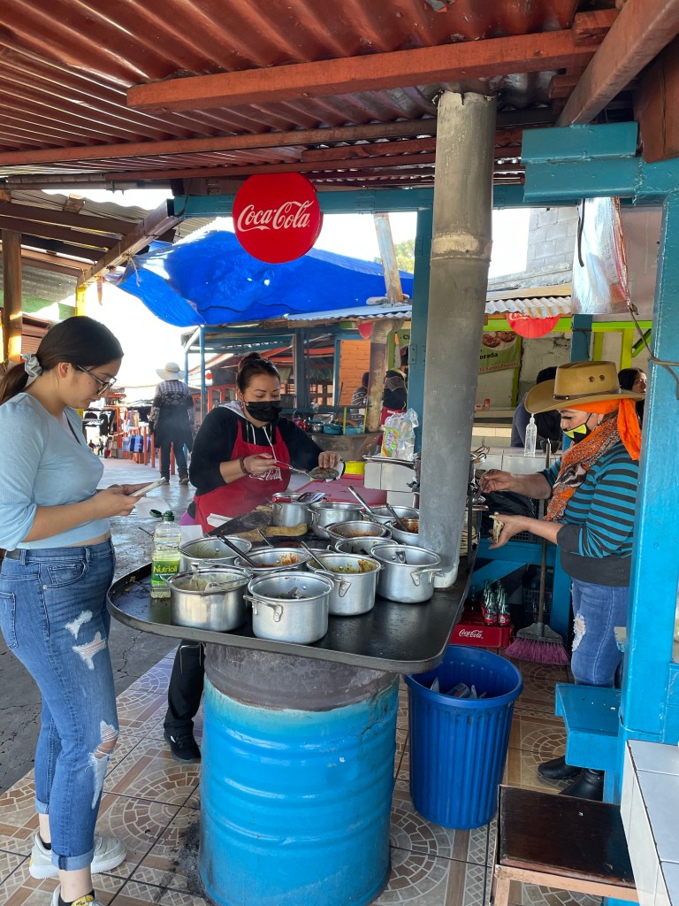 After our small adventure, we all took the tram back as a group, and headed over to the nearby train station for some lunch. This particular train station sells the best gorditas in the world (according to Jeff) and are a must have every time we come visit. A gordita is a thick tortillas that is cut open and stuffed with all types of delicious fillings. There are multiple different meats, cheeses and vegetables that can be put inside, and my personal favorite is the nepalés (cactus) filling. We all ordered our food and got to sit back and relax a little as we ate our lunch.