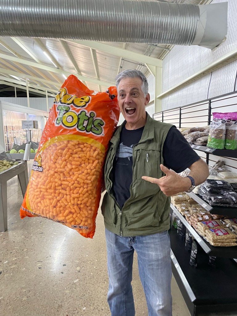 As we were driving we came across a Mennonite grocery store and decided to take a quick pit stop. While we were there to just use the restrooms, we stumbled across the biggest bag of cheese puffs we had ever seen.