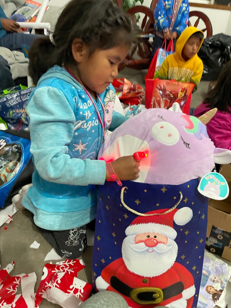 After we made sure everyone got their gift, we gave the signal that it was time to start unwrapping! The kids wasted no time to start opening gifts, and there was so much excitement in the room as everyone finally got to see what they got!