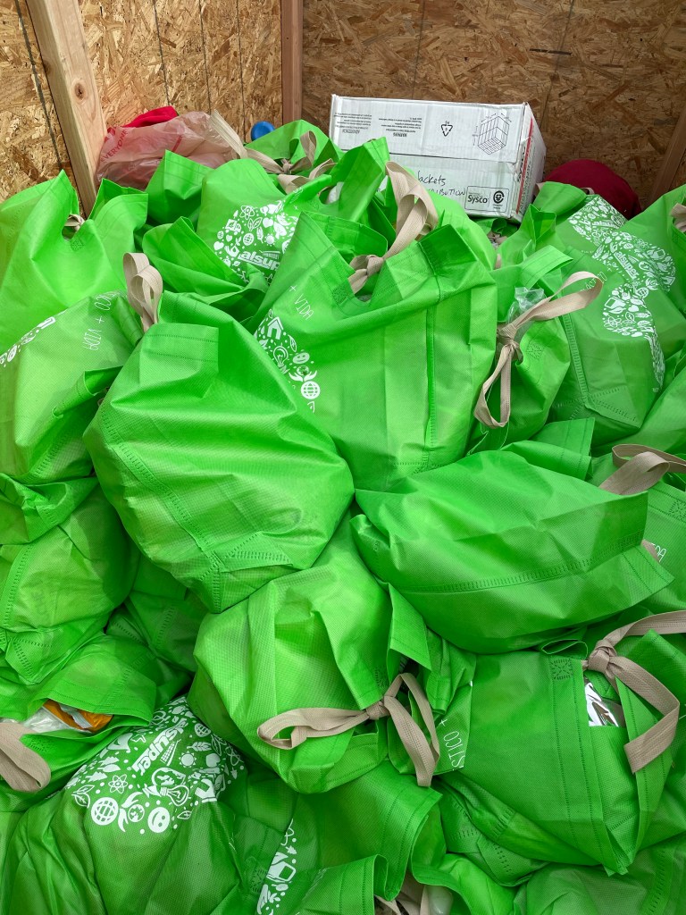 All of our bags organized and ready to hand out