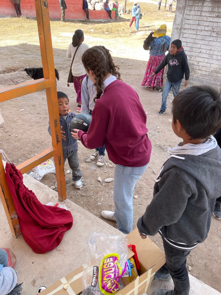 The drive up the mountain was very long and very bumpy. Most of the road is not paved, but Clifford somehow made it through. We arrived at a clearing with a few old buildings. People were slowly starting to arrive around the same time we did. A handful of kids from Creel wanted to come with us and help pass everything out. As people arrived, we passed out sports balls, stuffed animals, candy and jackets. Before we did the rest of the food distribution, some pastors that met us there gave a quick Sunday sermon and worship session.